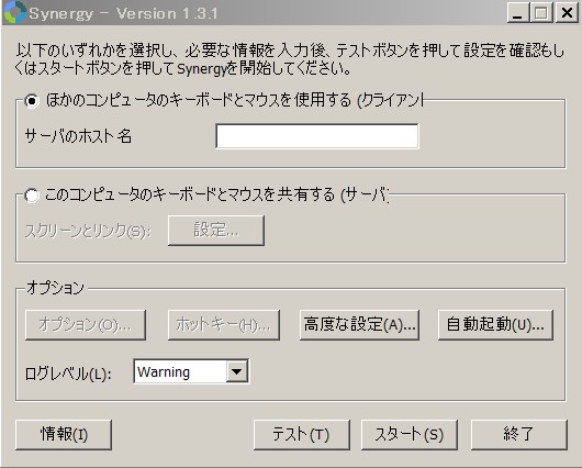 サーバ側である ubuntu は R Commander 関係で面倒臭い事になって、再インストールでまっさらなため、再度 synergy を突っ込んだ。