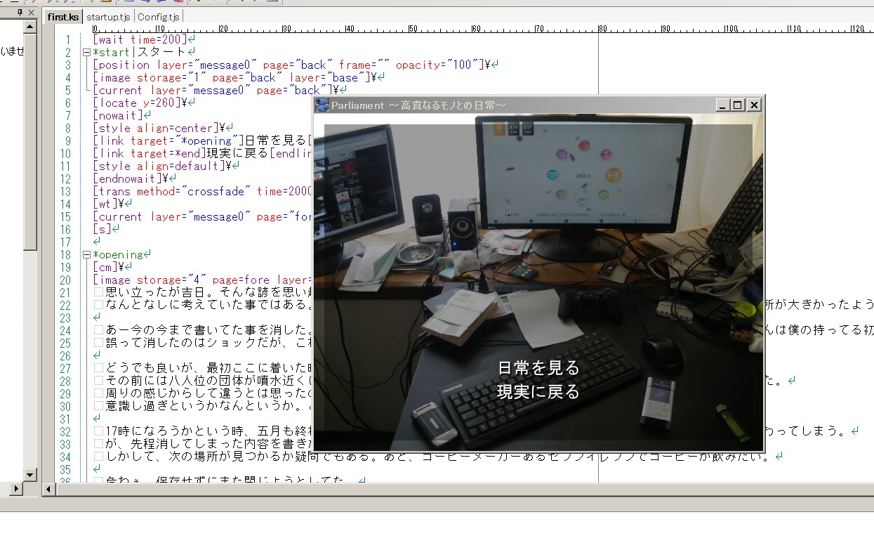音に聞こえし『吉里吉里』用エディタ『KKDE』を使用してみた。良い。良いとしか言い様がない。