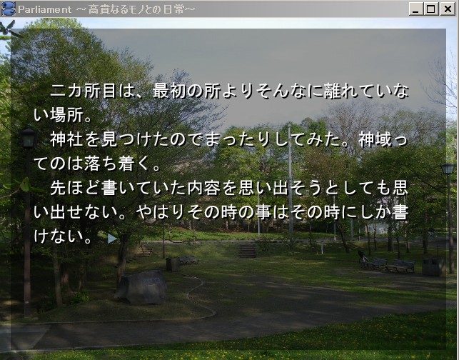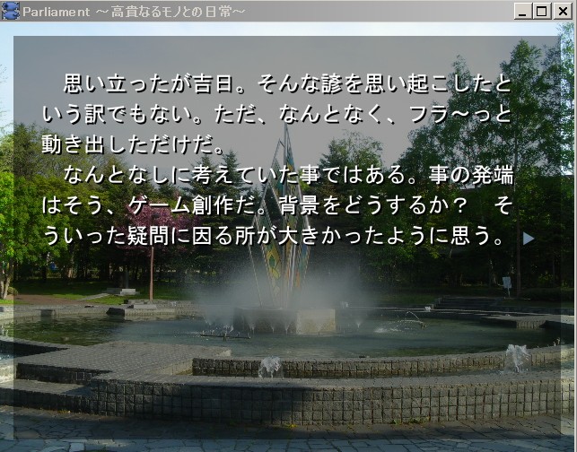 以前の日記で『Parliament ~高貴なるモノとの日常~』を創作して近々公開すると書いて、ようやっと着手し始めた。